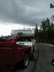 About an hour or so later, the ranger showed up and called the nearest tow truck, from Fishing Bridge which was en route to Cody (6 miles from where I was, 81 miles from Cody). An hour and a half later, the tow truck showed up. The two guys inside - Rory and Sam - were young, efficient and good-humored as we drove the six miles to Fishing Bridge at the zooming speed of 20 mph.